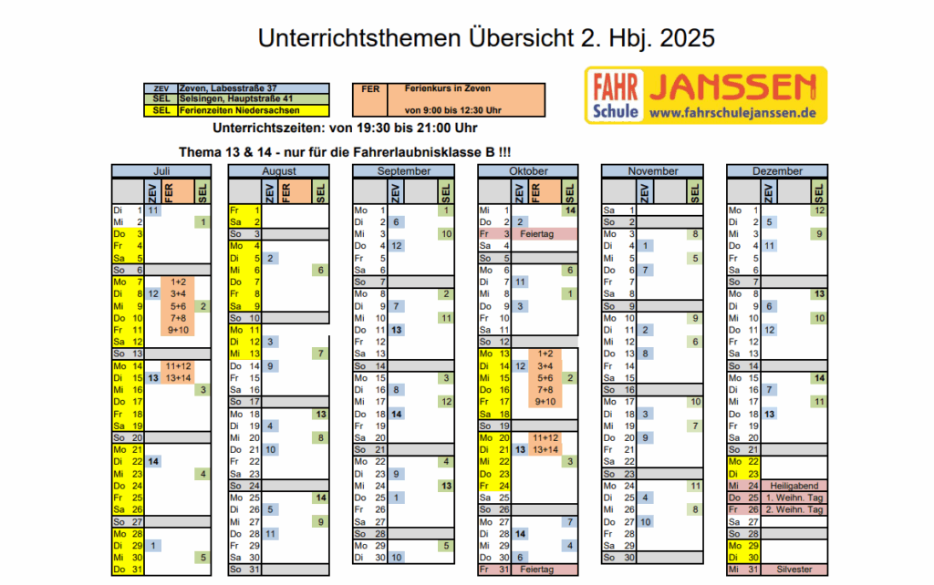 Eine Übersicht mit allen Theoriethemen in unseren Filialen.